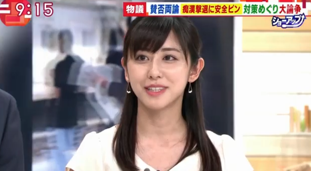 スタジオでは安全ピン対策にアシスタントで同局の斎藤ちはるアナウンサーが痴漢に「あったことあるんですけど」とした上で「その時怖くて、まったく声も出せずにどうすればいいかも分からない状態だったので、その時に安全ピンを持っているって思うだけで、もし困った時に刺せばいいんだって思いももてると思いますし。自分を守るためにも自分の心を強く持つためにも安全ピンはありかなと思います」と主張した。
