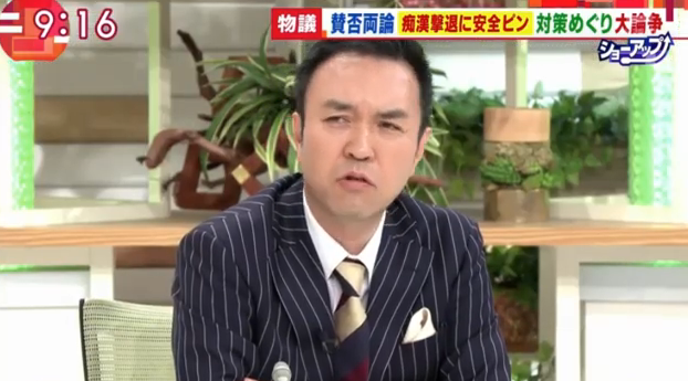 対してコメンテーターで同局の玉川徹氏は「何か他の方法ないのかなって」と反論し「どうしてもえん罪の方が気になっちゃう。絶対に痴漢やった本人であるんだったら、安全ピンで刺すぐらいいいと思うんだけど。そこなんですよね、気になるのは痴漢問題についていっつも」と持論を展開した。