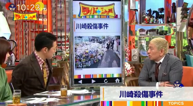 岩崎隆一容疑者は犯行後に自殺した。松本は「人間が産まれてくる上で不良品って何万個に1個絶対これはしょうがないと思うんですね。それを何十万個、何百万個にひとつぐらいは減らすことはできるのかなって、みんなの努力で」と示した上で「正直、ボクはこういう人たちはいますから絶対数。その人たち同士でやりあって欲しいですよね」とコメントしていた。