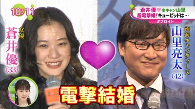 女さん「びっくり!蒼井優ちゃん結婚おめでとう!(山里とやれるとかすげえな…)