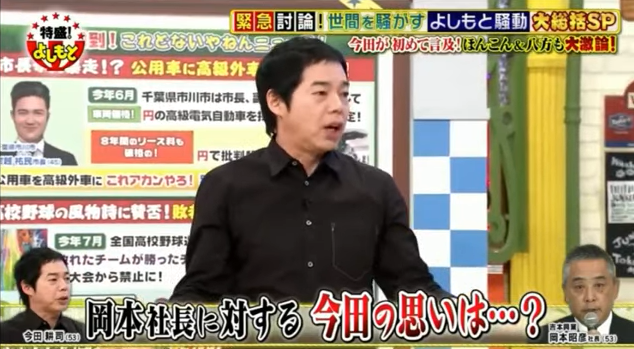 岡本昭彦社長(53)の「吉本はファミリー」という発言を受け、今田は「“親”とか“子供”っていうのは、それは林正之助さんからの流れです」と、