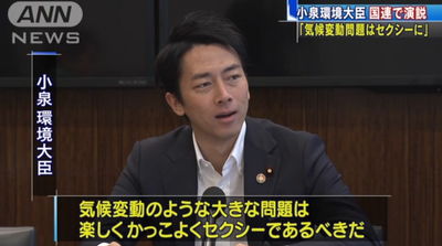 小泉氏は22日の記者会見で「政治には非常に多くの問題があり、時には退屈だ。気候変動のような大きな問題は楽しく、クールで、セクシーに取り組むべきだ」と英語で発言。