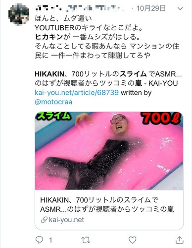 【悲報】HIKAKIN、700リットルのスライムで「音フェチ」動画...のはずが視聴者からツッコミの嵐