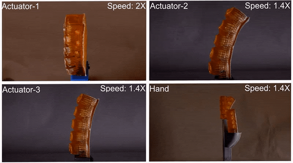 ロボット・ハンドはヒドロゲル製で、内部が空洞になっている3Dプリントの指3本で構成されている。それぞれの指は水で満たされ、細かな穴が開いた表面層に覆われている。温度が低い時には穴は閉じているが、30℃を超えると表面層が膨張し、穴が開いて水分を「発汗」し、ロボットを冷却する。サイエンス・ロボティクス誌に発表された論文で研究者らが述べたところによると、このロボット・ハンドの指は、人間の3倍の効率で発汗するという。