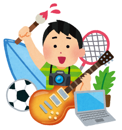 B:映画、大衆小説、大衆音楽、その他メジャースポーツ、漫画、グルメ 、アウトドア、写真、カフェ、アクアリウム、植物採取、家庭菜園、筋トレ、ウォーキング、インテリア