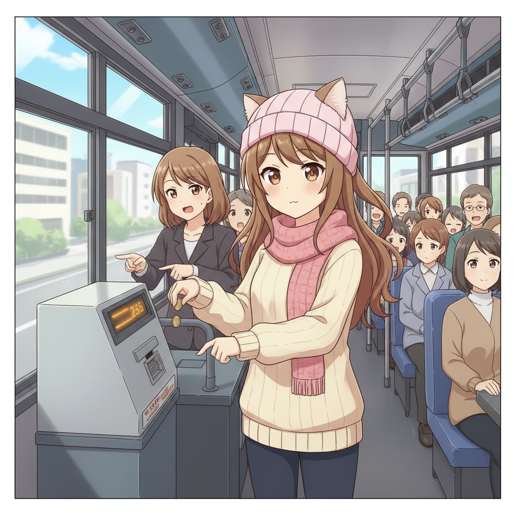「ここに入れるんだ」と言いながら、無事に“人生初バス運賃支払い”を終え、笑顔を見せていた。