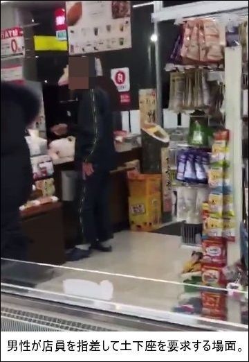 「なんか男の店員がインチキしたみたいなこといいだして、キレとる」と撮影者は記している。「すいません」、「ごめんなさい」と店長は繰り返し謝罪したが、男性は聞く耳を持たない。