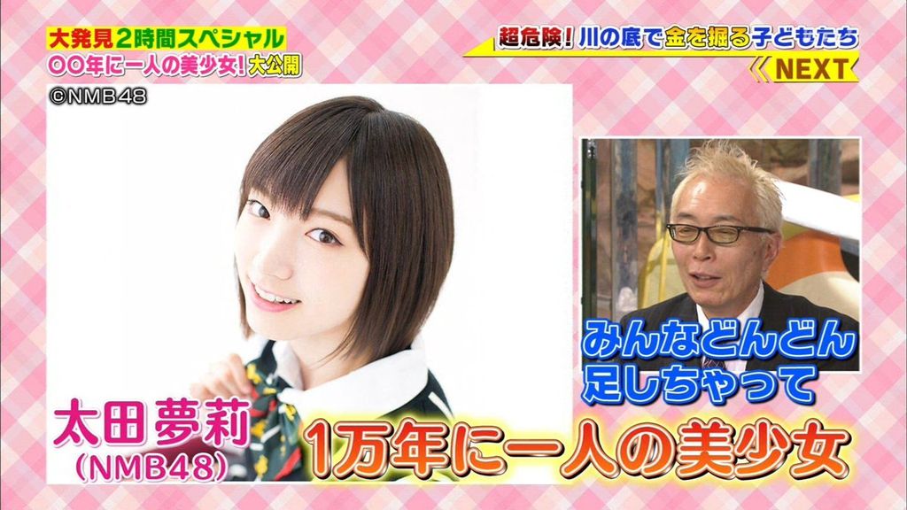 ◯◯年に一人の美少女を紹介。木村ユリヤは1000年に一人の逸材、鵜川もえかは3000年に一人の美少女、太田夢莉は1万年に一人の美少女、小栗有以は2万年に一人の美少女、百川晴香は300万光年に一人の美少女、長久玲奈は1億光年に一人の美少女と呼ばれている。
