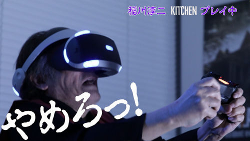 『PSVR』を装着した稲川淳二さんは最初の舞台となった廃墟を探索。また『バイオハザード7』だけでなく『PSVR』用として無料で公開された『KITCHEN』もプレイ。クリーチャーに襲われた稲川淳二さんは「あぁ、どうすりゃいいんだ!うあああ おぃっ!!やめろ!やめろ!」と驚きまくり。