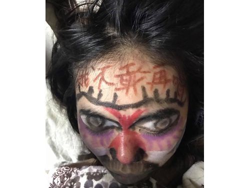 酒を飲んで酔っ払っている隙に、夫から落書きをされた女性の顔写真がこのほど、フェイスブックのファンページ「爆料公社」に投稿された。
