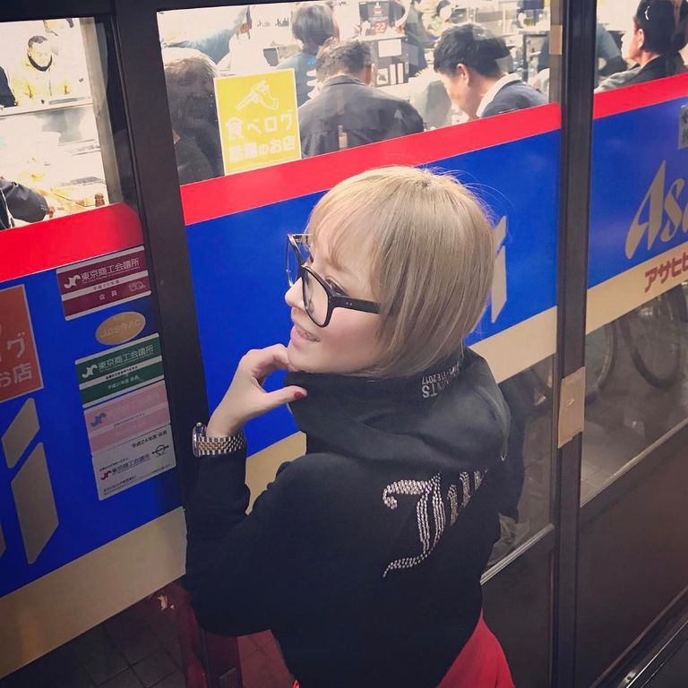 浜崎は、先日、念願だった有名店に足を運んだと報告。「鼻真っ赤にして並んだ甲斐あって超楽しかった&美味しかった。また行きたい」と、寒空の中、行列に並んで入店していたことを明した上で、店の前で撮影したと思われる黒パーカーに黒縁メガネ姿の写真を公開した。また、毛先はパーカー部分に隠れているが、髪の感じから金髪のショートヘアになっているようにも見える。