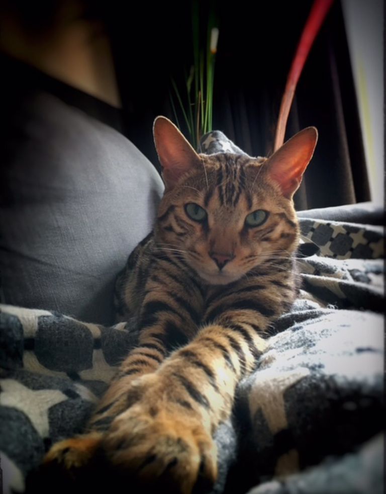 ファンは「セクシー!!!」「猫、そこを替わりなさい」「猫の日にちなんだお写真をありがとうございます」「猫すらファビラス」などの声を上げている。