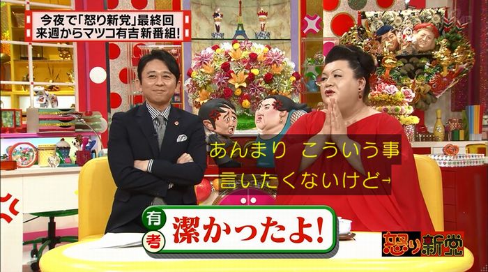 2011年にスタートした番組も、この日で最終回。6年間で23万8037件の怒りメールが届き、1208件を番組で取り上げたと青山アナが紹介すると、有吉弘行(42)は「始めた当初より、世間が怒っている」と変化を口にした。