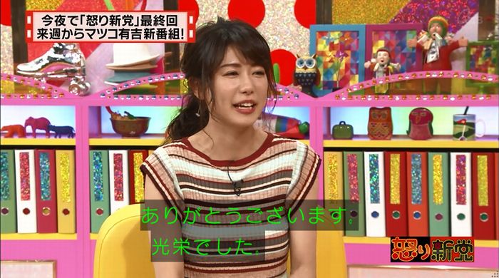 テレビ朝日・青山愛アナ(28)が、29日放送の同局系「マツコ&有吉の怒り新党」(水曜・後11時15分)最終回のエンディングで号泣した。