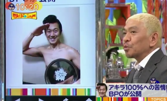 お笑いコンビ「ダウンタウン」の松本人志(53)が21日放送のフジテレビ「ワイドナショー」(日曜前10・00)で、お笑いタレントのアキラ100%(42)の裸芸に対し、放送倫理・番組向上機構(BPO)が視聴者からの苦情を公表した件について言及。持論を披露した。