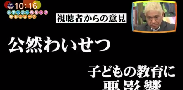 BPOが4、5月に公式サイトで公開している「視聴者からの意見」欄で、視聴者から寄せられた意見を公表。「公然わいせつ」「子どもの教育にも悪影響」など、アキラに対してと思われる訴えが寄せられた。
