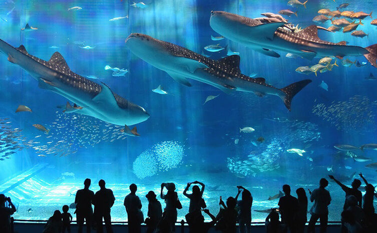 美ら海水族館でフラッシュに反応したマグロが水槽に思いっきり衝突してきて死んじゃった😢