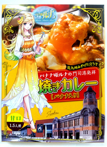 「本気すぎるコスプレ公務員」として話題の北九州市職員が扮する「バナナ姫ルナ」の絵を箱に描いたレトルトカレー(700円)が26日発売される。
