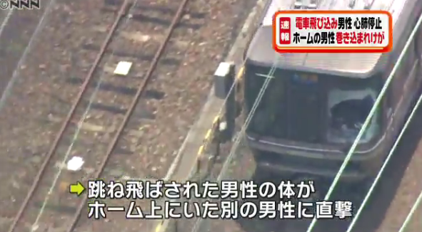 男性が電車に飛び込み、別の男性に直撃