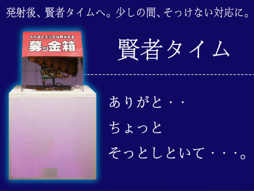 募ッ金箱には「募ッ金モード」「絶頂モード」「賢者タイム」の3つのモードがあり、金額によって様々な反応を楽しむことが可能。