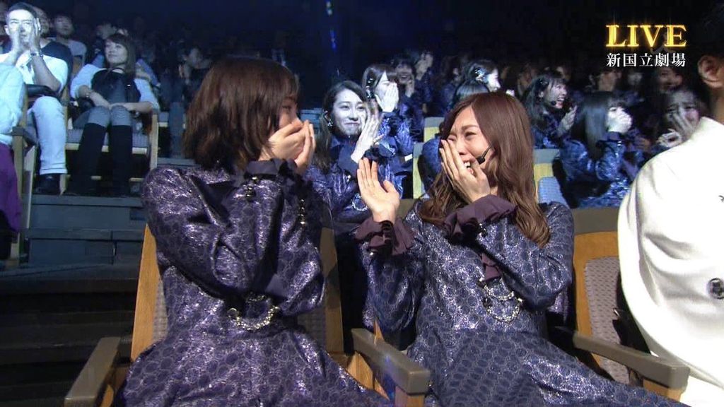 白石麻衣(25)西野七瀬(23)は涙を浮かべ、生駒里奈(22)高山一実(23)は手をつないで大はしゃぎした。